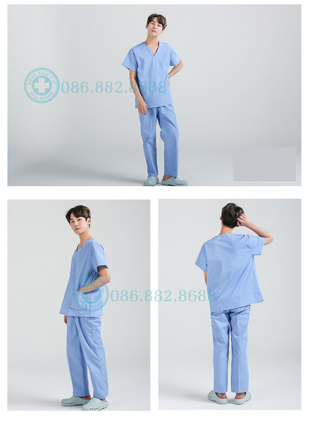 - Bộ quần áo y tế vải thô cotton có khả năng thấm hút mồ hôi.