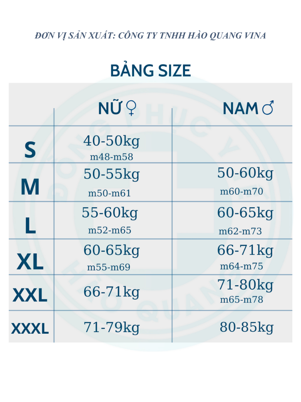 + Size L: 1m65 – 1m70, 64 – 71kg